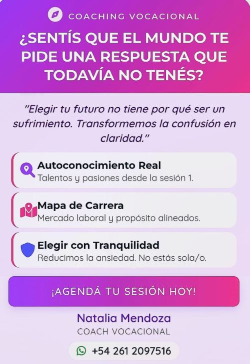 📞 Comunicate directamente con la Coach Natalia Mendoza vía telefónica al 2612097516, o vía correo electrónico a [email protected]