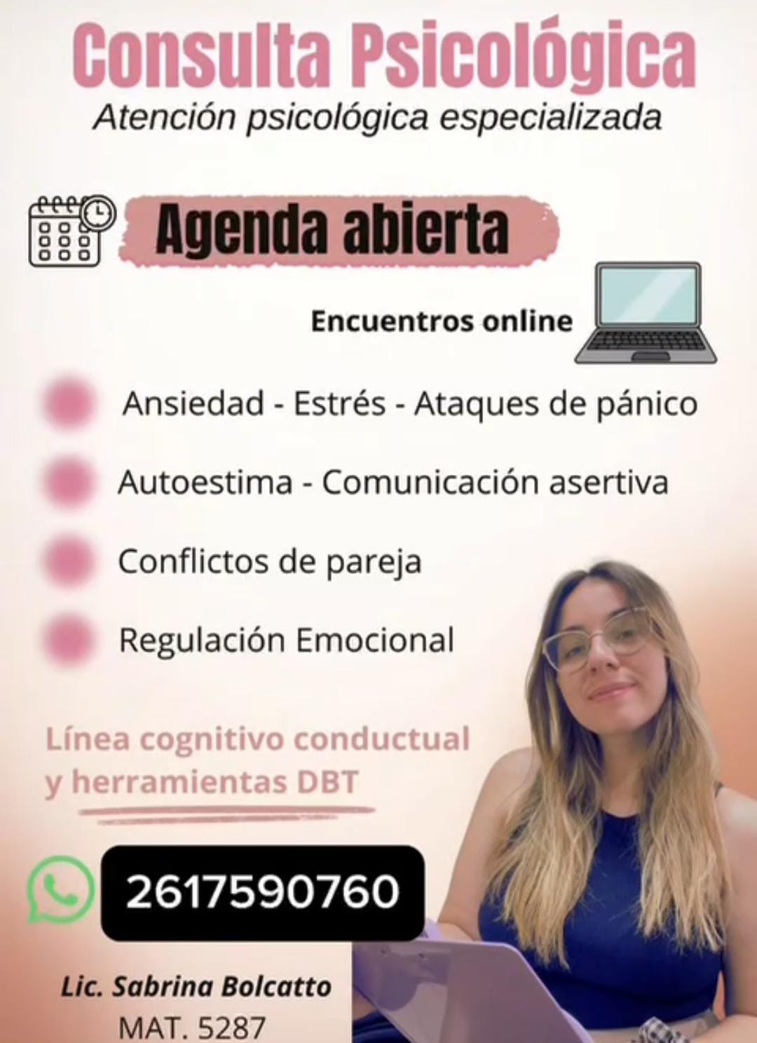 Accedé a beneficios especiales por ser afiliado/a y comunicate con la Lic. Sabrina Bolcatto para recibir atención psicológica individual.